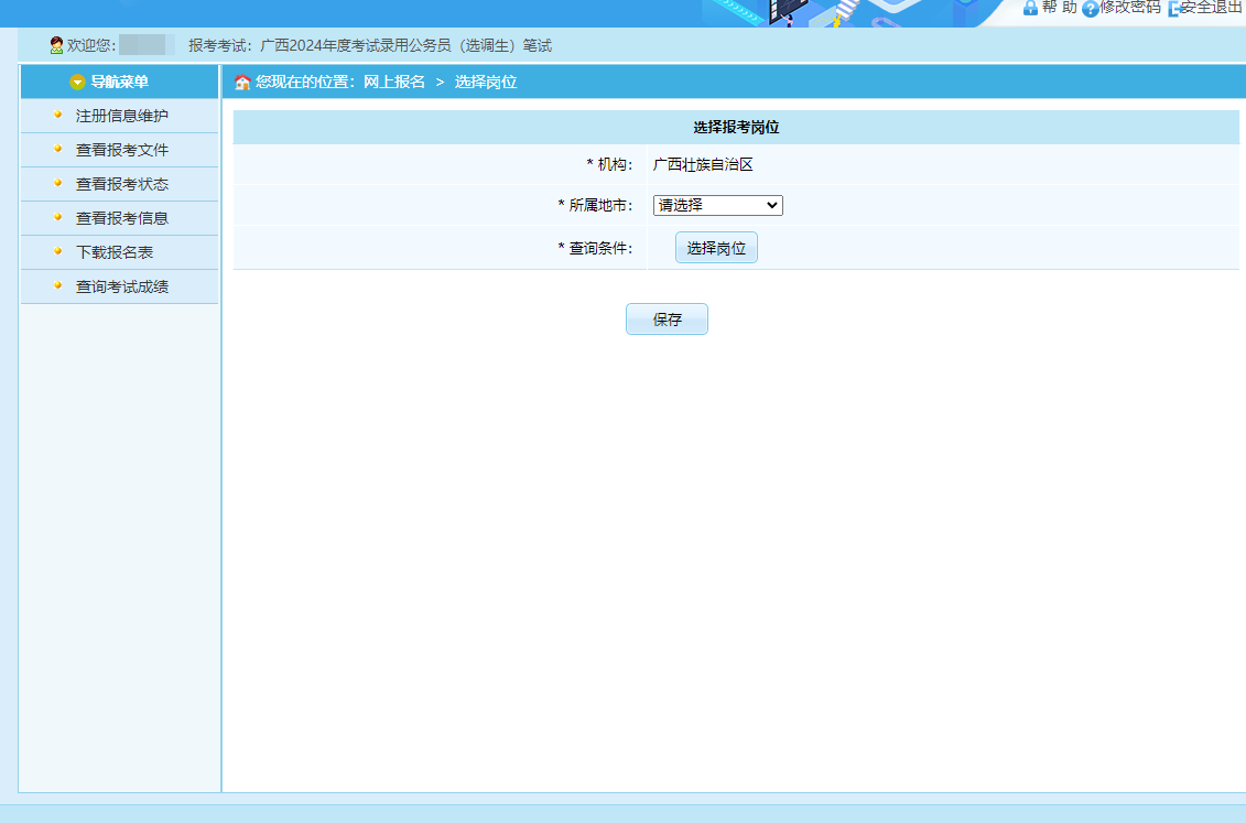 第七步:考生報(bào)名選擇報(bào)考地市及崗位