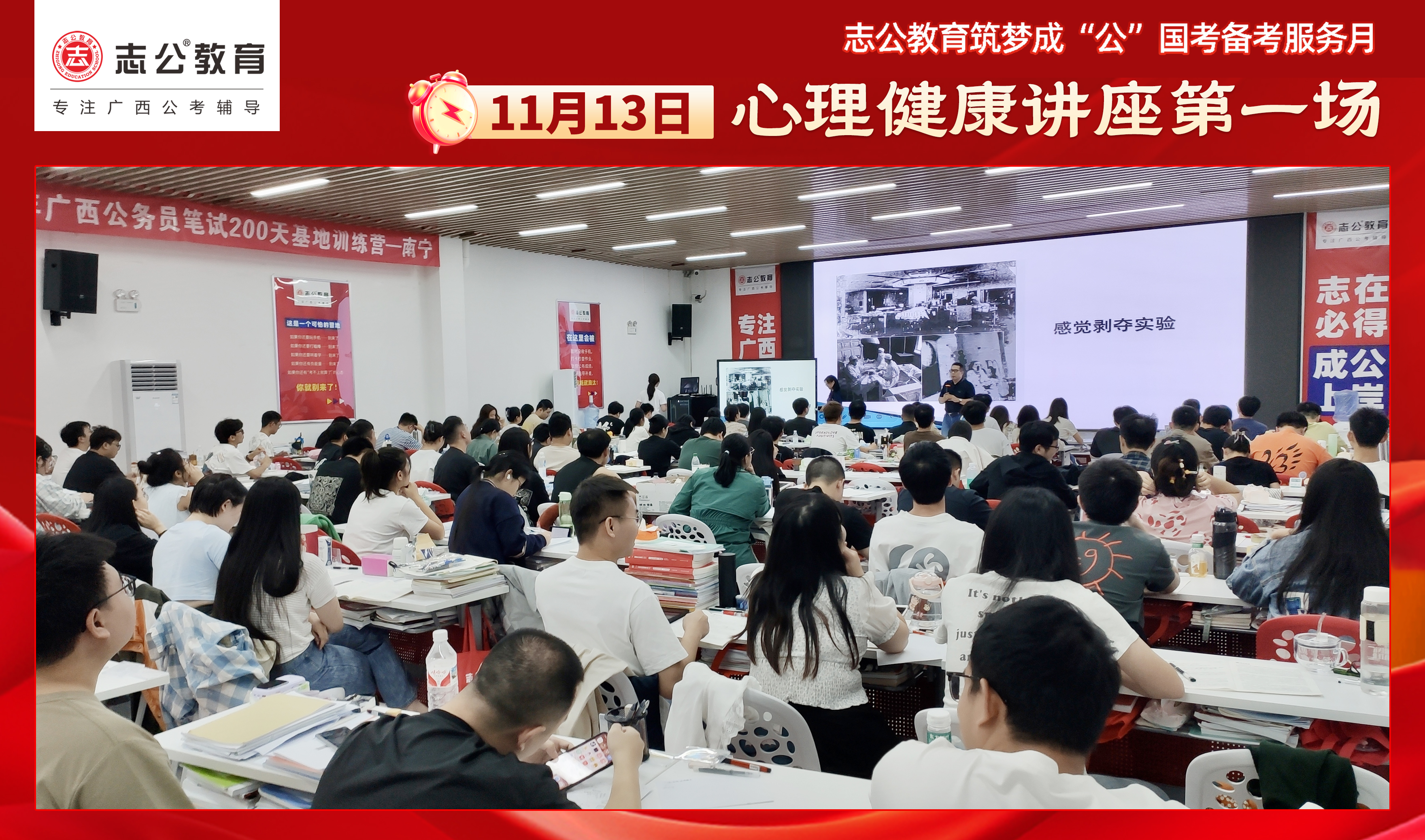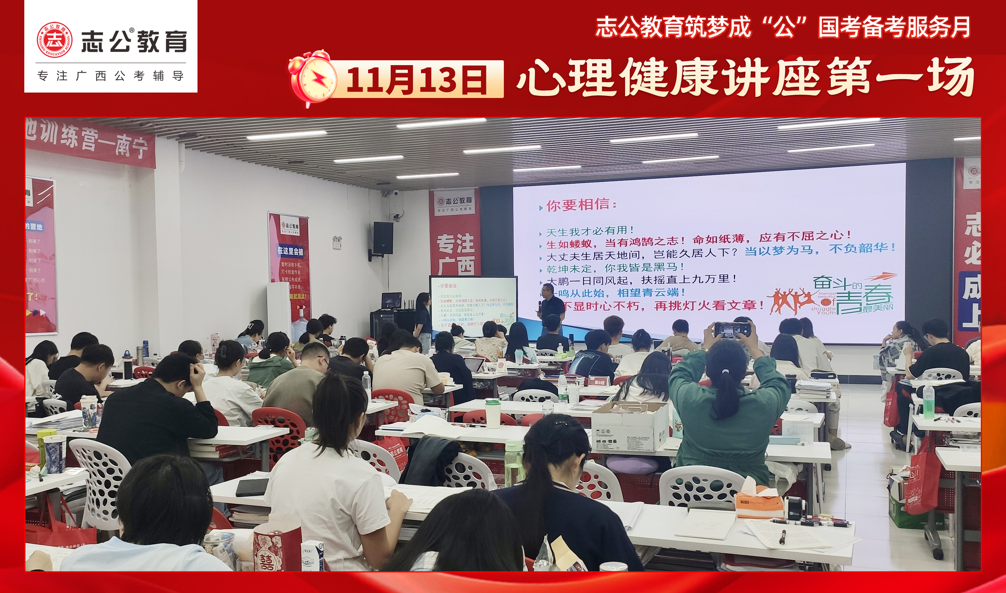 親愛的考生們,不要讓壓力成為你追夢(mèng)途中的絆腳石。在志公教育基地班,你將學(xué)會(huì)如何在國(guó)考的征程中保持從容,如何在壓力下穩(wěn)步前行。且行且看且從容,讓我們一起向著國(guó)考的勝利邁進(jìn)!第一場(chǎng)心理講座已結(jié)束,第二場(chǎng)心理講座將在11月17日舉行,期待大家以更從容自信的姿態(tài)應(yīng)對(duì)即將到來的公務(wù)員考試,加油!