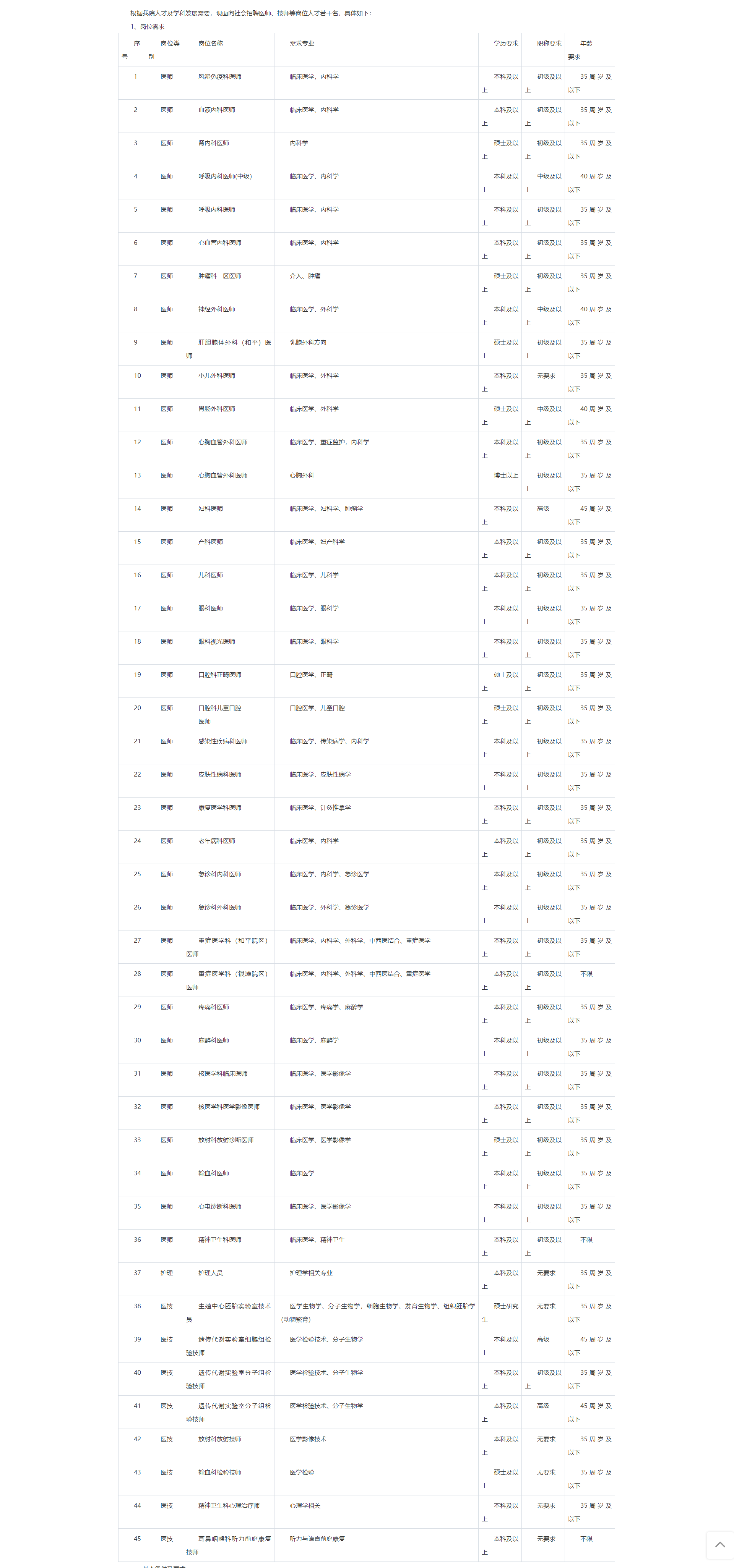 根據我院人才及學科發(fā)展需要,現面向社會招聘醫(yī)師、技師等崗位人才若干名,具體如下: