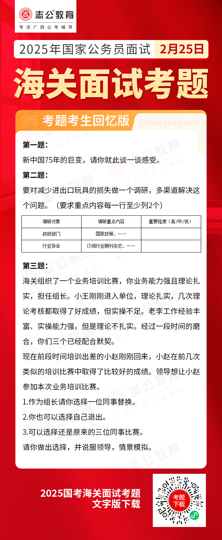 2025年2月25日國(guó)考海關(guān)面試考題(考生回憶版)