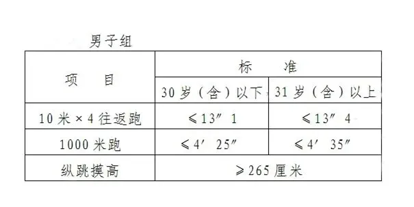 (一)體能測(cè)試。資格審查合格即可參加體能測(cè)試。