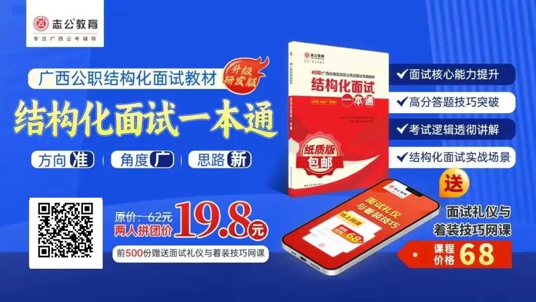 廣西區(qū)考面試準備需緊扣本土特色,強化邏輯表達和實務(wù)能力,同時注重細節(jié)(如資格復(fù)審材料、禮儀)。建議從現(xiàn)在起每天練習2-3套題,持續(xù)積累廣西熱點案例,爭取面試高分!資料已經(jīng)為大家準備好了,快去看看吧!
