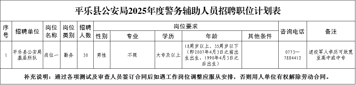 (四)本公告未盡事宜,由平樂縣公安局公開招聘工作領(lǐng)導(dǎo)小組辦公室負責(zé)解釋。