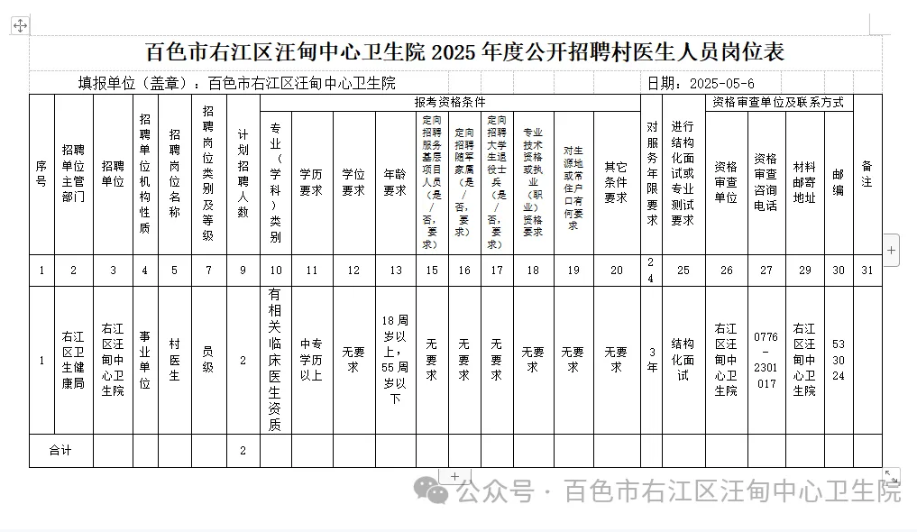 3.報(bào)名地點(diǎn):百色市右江區(qū)汪甸中心衛(wèi)生院三樓辦公室,聯(lián)系人:林紅青 聯(lián)系電話:0776-2301017。因報(bào)名信息填寫錯(cuò)漏等所造成的后果,本單位不負(fù)任何責(zé)任。