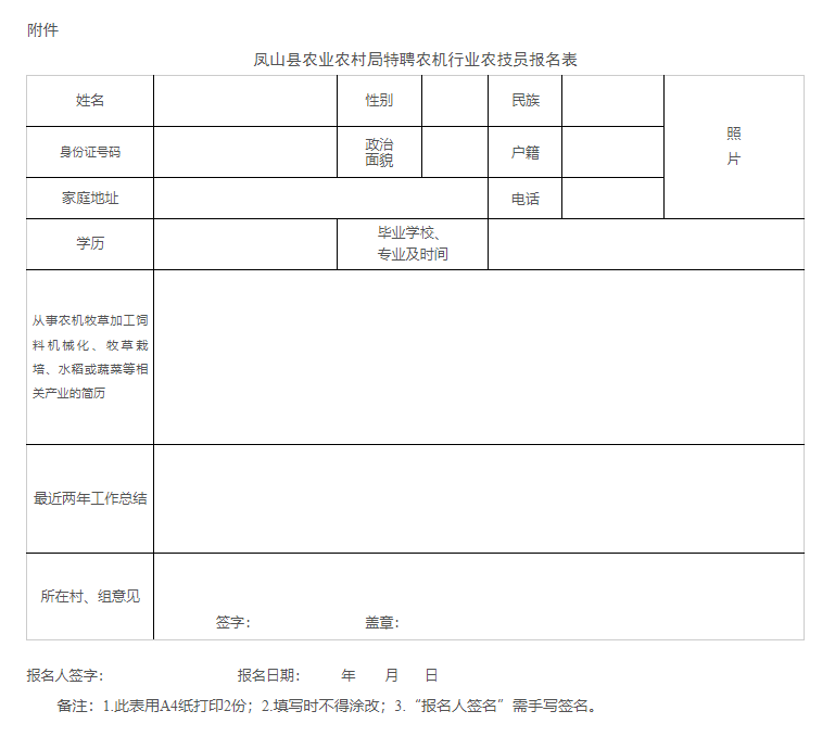 附件:鳳山縣農(nóng)業(yè)農(nóng)村局特聘農(nóng)機行業(yè)農(nóng)技員報名表