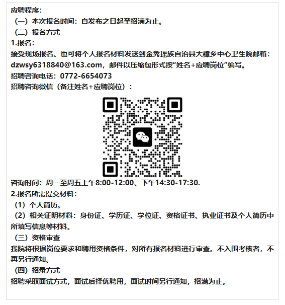 原文標(biāo)題:金秀瑤族自治縣大樟鄉(xiāng)中心衛(wèi)生院2025年公開招聘人才公告