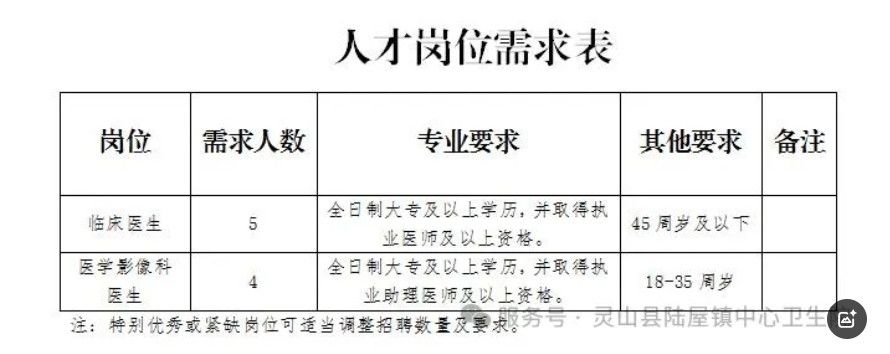 原文標(biāo)題:靈山縣陸屋鎮(zhèn)中心衛(wèi)生院(靈山縣第四人民醫(yī)院)關(guān)于招聘2025年編外人員的公告