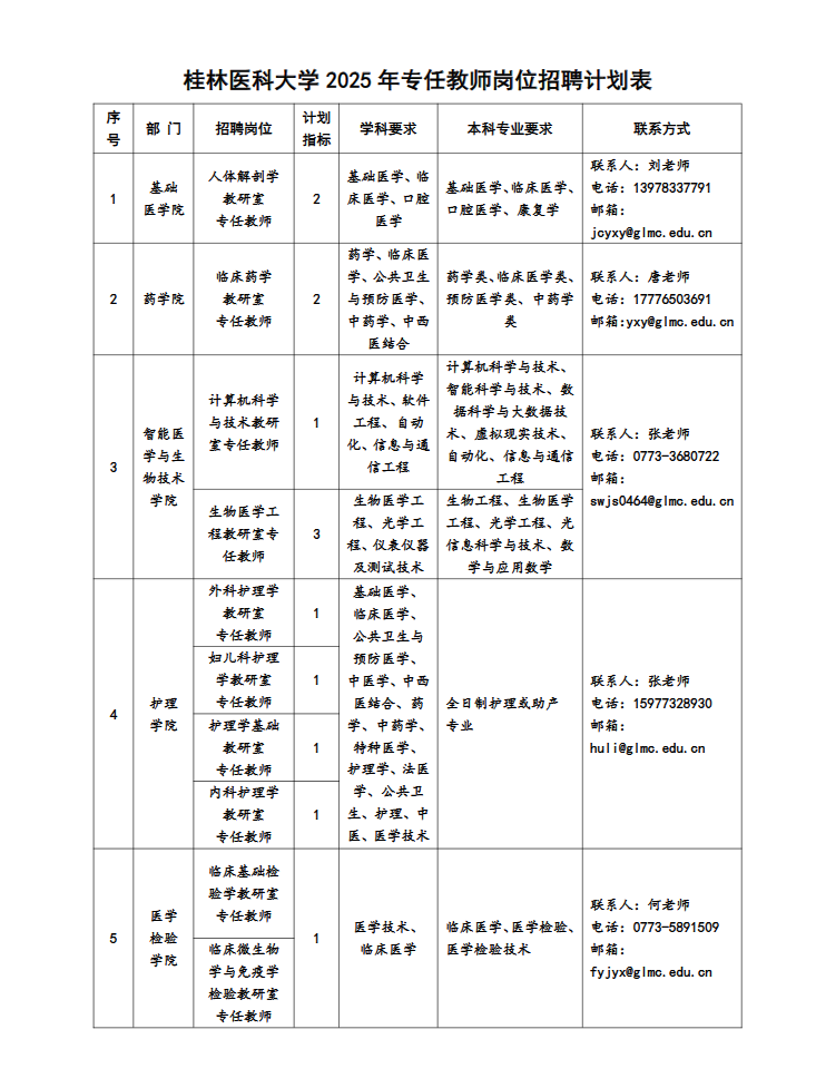 (二)各部門聯(lián)系方式見:桂林醫(yī)科大學(xué)各崗位招聘計劃表。