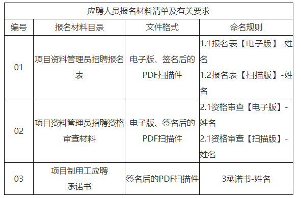 應(yīng)聘人員請按照《應(yīng)聘人員報名材料清單及有關(guān)要求》提供相應(yīng)報名材料,打包壓縮成一個文件(文件名和郵件主題統(tǒng)一以本人姓名進(jìn)行命名,例如“2025年項目資料管理員_張三”),發(fā)送至電子郵箱:bsgdjgkjp@gx.csg.cn。