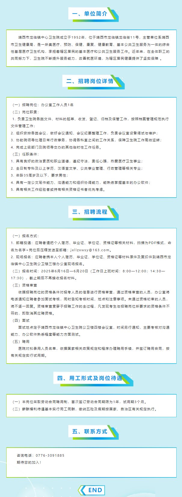原文標題:靖西市龍臨鎮(zhèn)中心衛(wèi)生院辦公室人員招聘公告