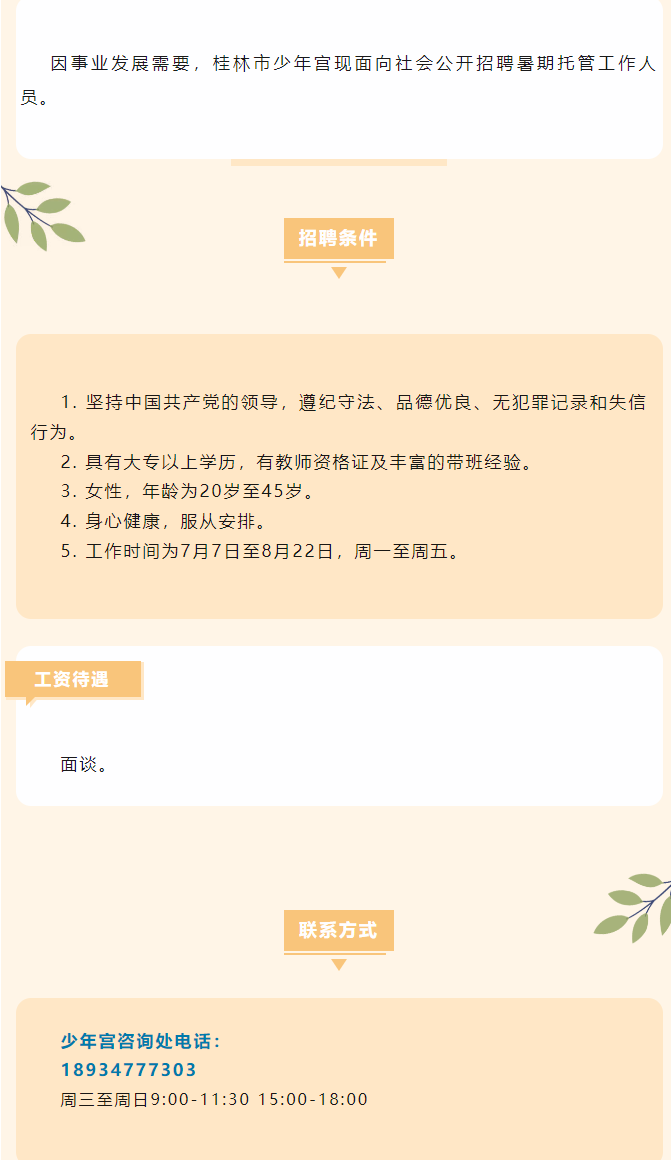 原文標題:桂林市少年宮暑期托管營工作崗位招聘