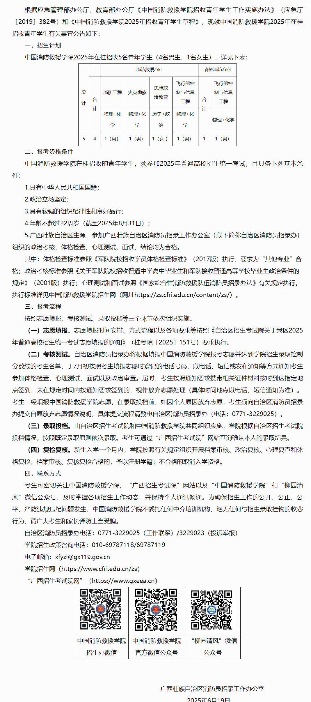 2025年中國消防救援學院面向廣西壯族自治區(qū)招收青年學生公告