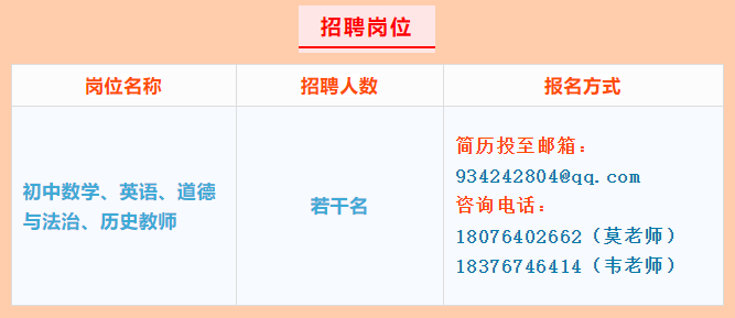 根據(jù)2025年秋季學期我校教育教學需要,現(xiàn)向社會公開招聘編外教師。我校擬招初中數(shù)學、英語、道德與法治、歷史頂崗教師若干名。工資待遇按江南區(qū)政府事業(yè)單位臨時聘用人員工資標準:無職稱3100元/月,初級職稱3200元/月,中級職稱3500元/月,高級職稱3700元/月,其他班主任津貼(5元/生·月)、年度績效(1000-1200元/年)和參與學校管理工作量發(fā)放(有五險一金)。學校提供免費住宿。
