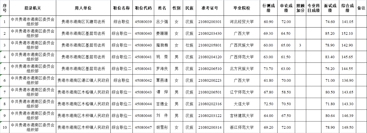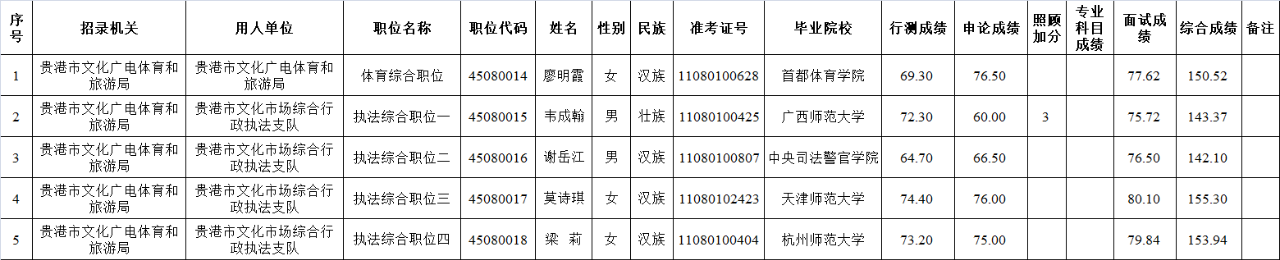 | 6.6 | 貴港市司法局2025年度考試錄用公務員擬錄用人員名單 |