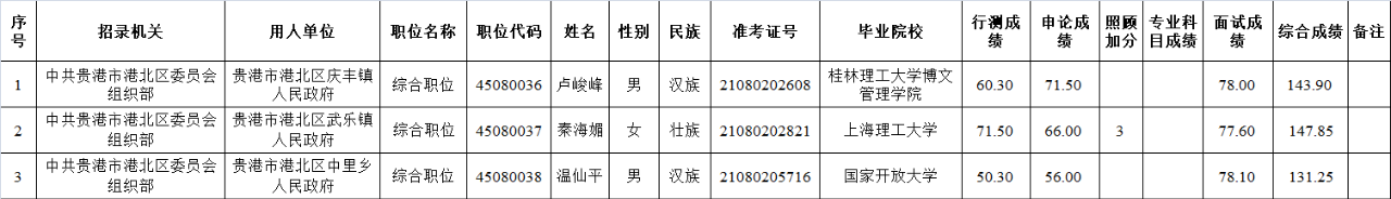 | 6.6 | 貴港市人力資源和社會保障局2025年度考試錄用公務員擬錄用人員名單 |