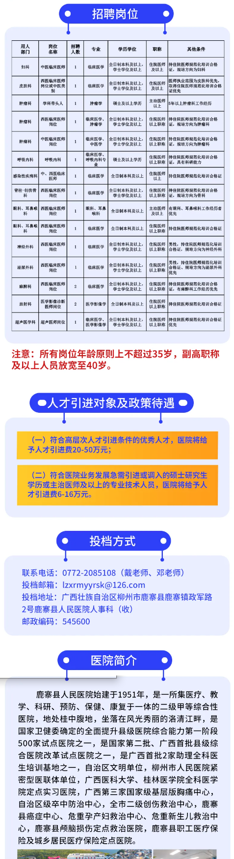 2025年鹿寨縣人民醫(yī)院人才招聘17人