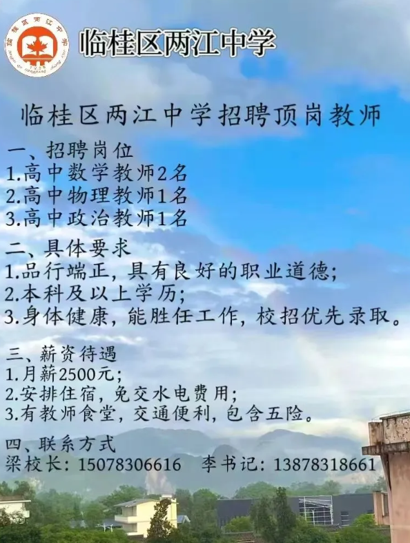 2025年桂林市臨桂區(qū)兩江中學(xué)招聘頂崗教師4人