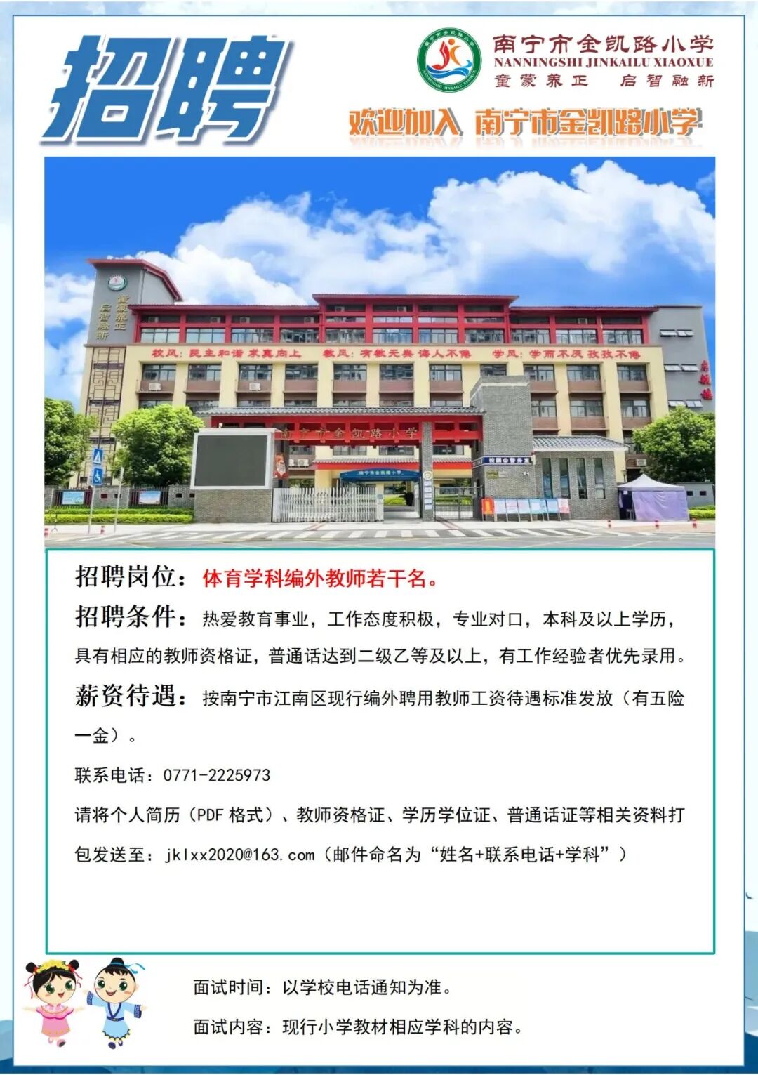 2025年南寧市金凱路小學招聘體育學科編外教師