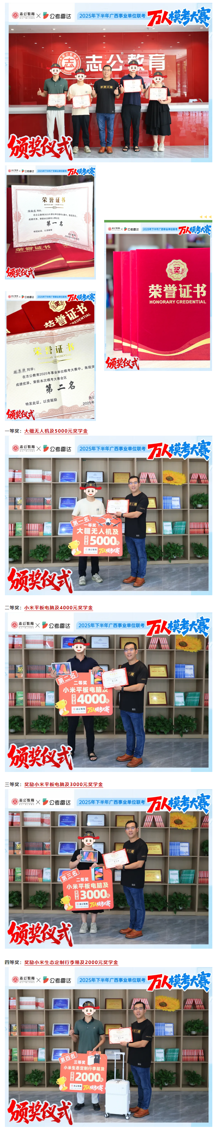 ??即筚惖膬r值不止于排名,更在于幫大家提前適應節(jié)奏、找準薄弱項,這些獎勵是認可,更是激勵!愿大家?guī)е@份動力繼續(xù)沖刺備考目標,頒獎儀式落幕,但備考沖刺的號角剛剛吹響,未參與本次??嫉目忌鸁o需遺憾,志公教育下一期??即筚惣磳?!依舊是全真考場復刻、專業(yè)師資護航、豐厚獎品加持!立刻報名參與大賽吧,說不定下一個登臺領獎的就是你!