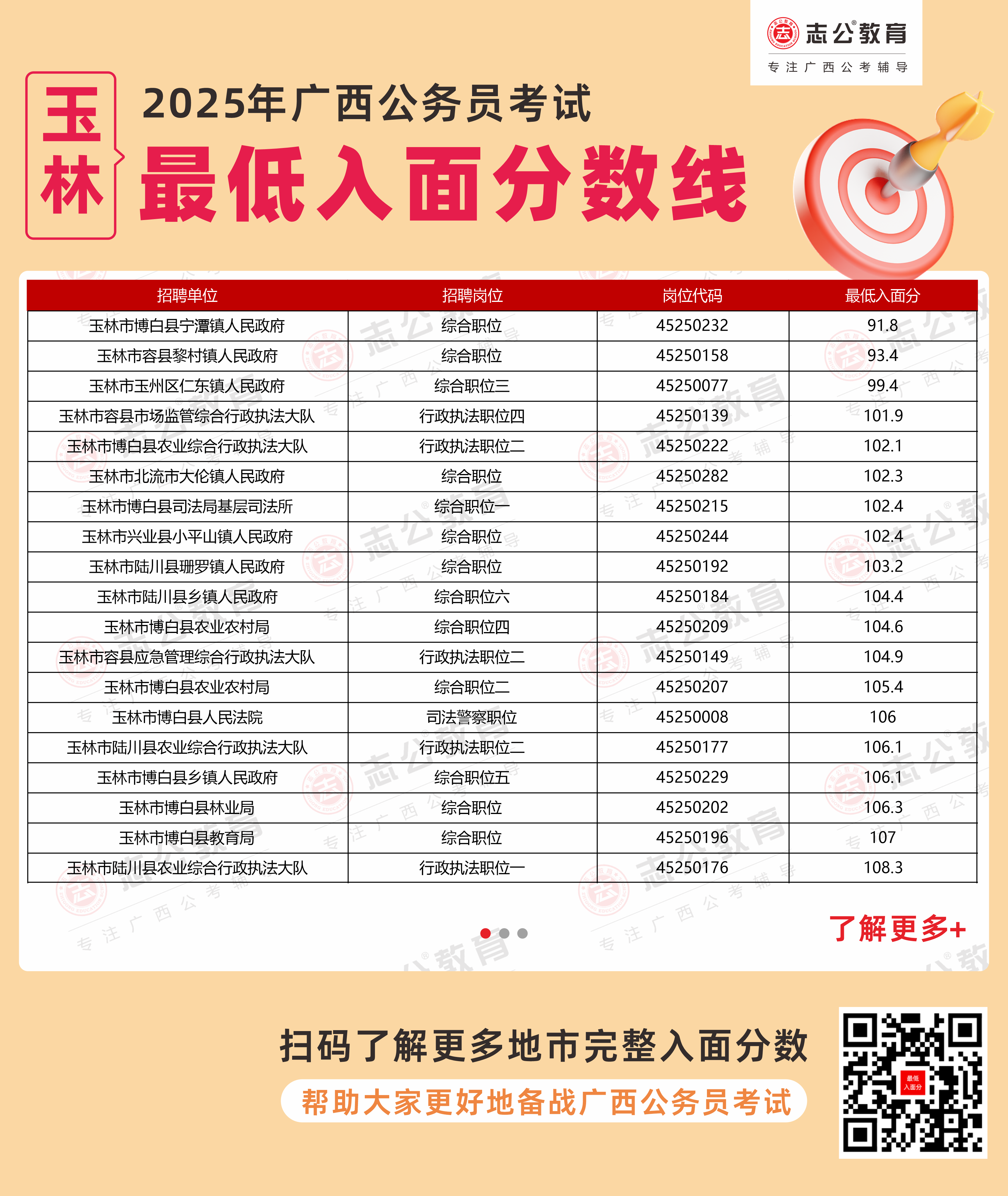(點(diǎn)擊下載更多2025年玉林公務(wù)員最低入面分?jǐn)?shù),數(shù)據(jù)整理自官方發(fā)布的面試資格審查公告)